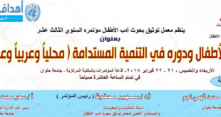 المؤتمر العلمى الثالث عشر لأدب الأطفال) أدب الأطفال ودوره فى التنمية المستدامة (محليا وعربيا وعالميا) يومي 21 -22 فبراير2018 نظم معمل توثيق بحوث أدب الأطفال بالمكتبة المركزية لجامعة حلوان مؤتمره السنوى الثالث عشر بعنوان ” أدب الأطفال ودوره فى التنمية المستدامة (محليا وعربيا وعالميا) ” والذي عقد في قاعة المؤتمرات بالمكتبة المركزية لجامعة حلوان في الفترة من 21 -22 فبراير2018 وذلك تحت …